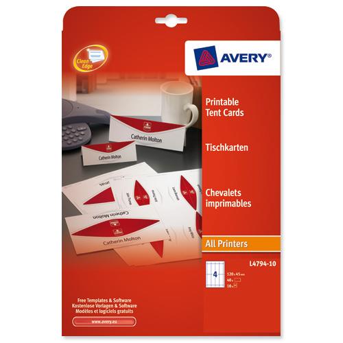 Avery L4794 Printable Business Tent Card 4 per Sheet 120x45mm White 190gsm Ref L4794-10 - 40 labels