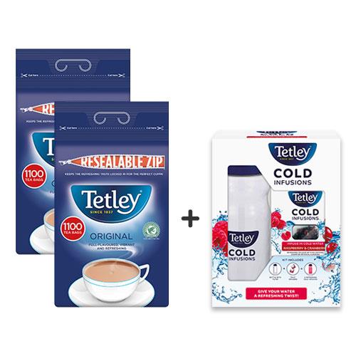 When you purchase this product, you will receive 2 bags of Tetley teabags and a FREE Cold Infusions starter kit containing a bottle with filter and 12 infuser sachets
